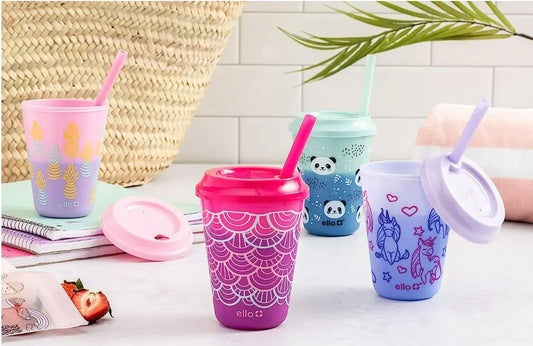 4 Vasos Reusable Cambia De Color Popote Tapa Niños