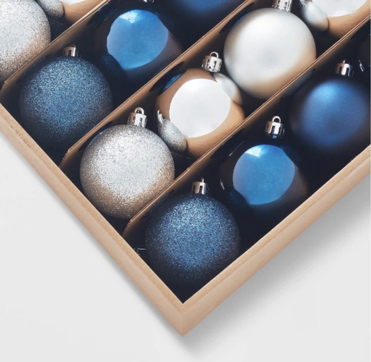 Set 50 Esferas Adornos Navideños Arbol Navidad Plastico Azul Plata Plateadas