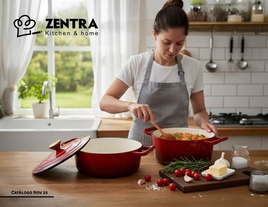 Bateria de cocina Esmaltada Hierro Fundido Antiadherente ZENTRA 7pz