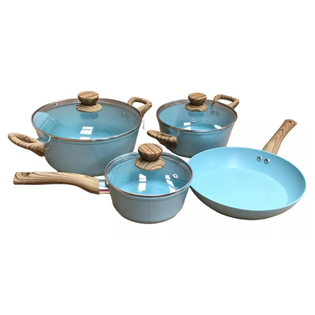 Batería Cocina 7 Pzas Aluminio Azul Sarten Cacerola