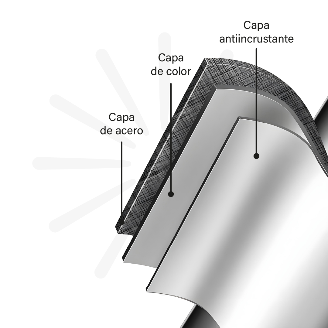 Cuerpo exterior de acero con acabado resistente y cubeta interior de plástico antigolpes, diseñado para durar y resistir el uso diario.