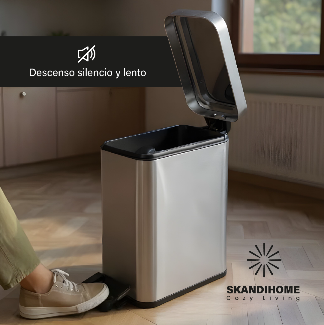 Ideal para espacios pequeños como debajo del fregadero, dentro de armarios o junto a encimeras. Su diseño rectangular con tapa y pedal manos libres mantiene la basura oculta y controlada, aportando orden y discreción a cualquier ambiente.