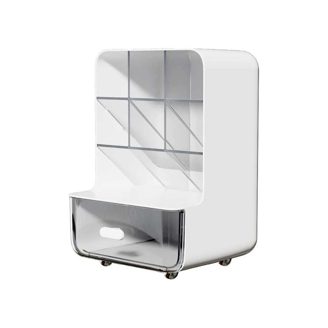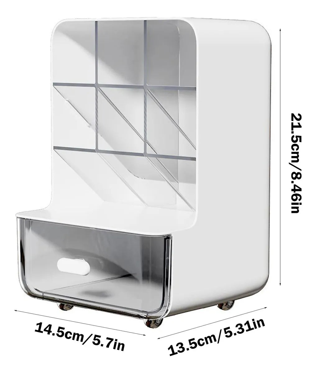 Las rejillas centrales son ideales para artículos de uso frecuente como lápices, brochas o herramientas pequeñas, mientras que el cajón inferior te brinda espacio adicional para almacenar cosméticos, agendas, fotos o artículos de oficina.