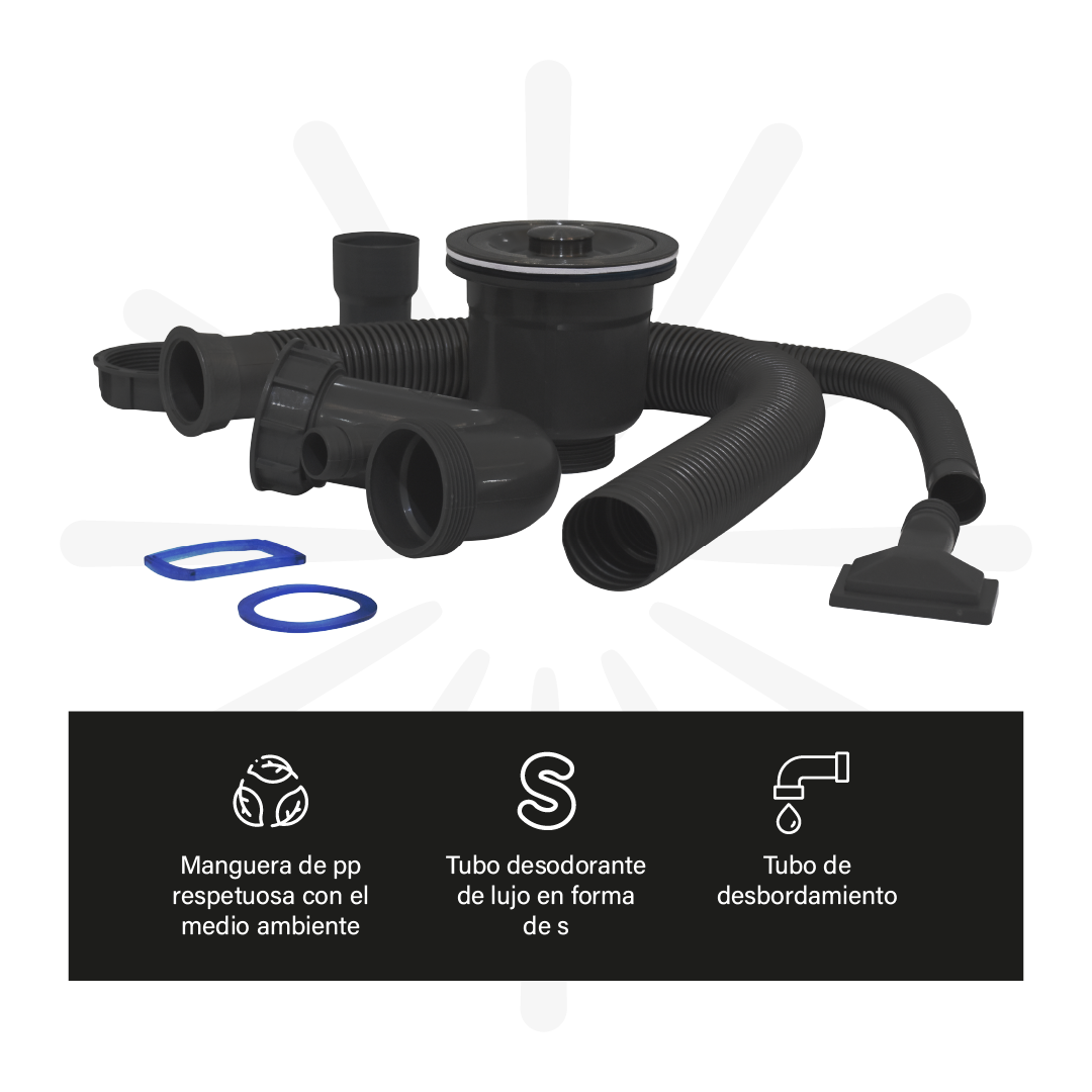 Incluye boquilla de drenaje optimizada que evita la acumulación de agua, mejora la circulación y agiliza tus tareas diarias en la cocina.