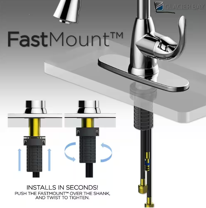 Este grifo de cocina también incluye el exclusivo sistema de montaje FastMount para una instalación más rápida y sencilla.