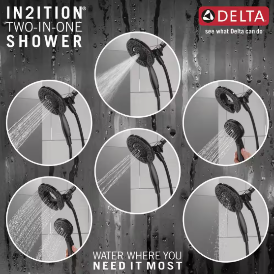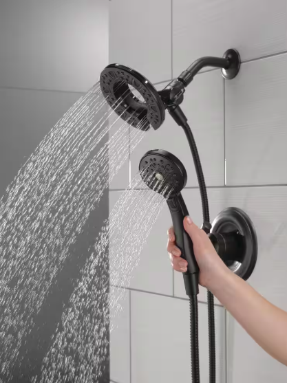 Las sutiles llamaradas y la forma circular de la colección Chamberlain crean una composición elegante en un diseño de acabado. La ducha 2 en 1 Delta In2ition cuenta con una ducha de mano desmontable que se puede utilizar por separado o simultáneamente con el cabezal de la ducha. Esta funcionalidad dual integrada proporciona la máxima flexibilidad sin sacrificar el calor, ya que puede elegir que el agua fluya solo desde el cabezal de la ducha, solo desde la ducha de mano o tanto desde el cabezal de la ducha como desde la ducha de mano a la vez.