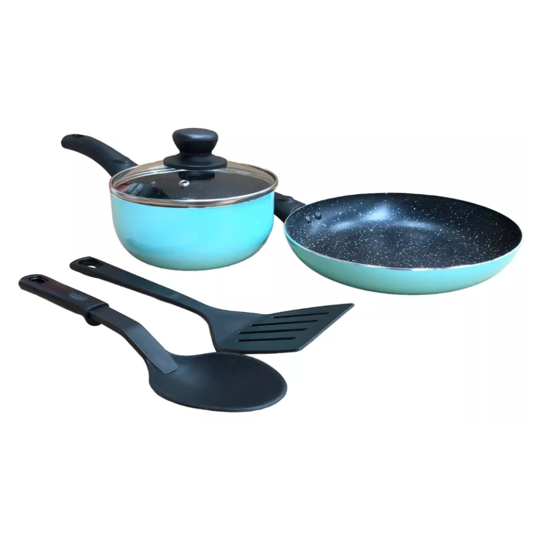 Juego Batería Cocina Aluminio 5pzas Menta Sarten Cacerola